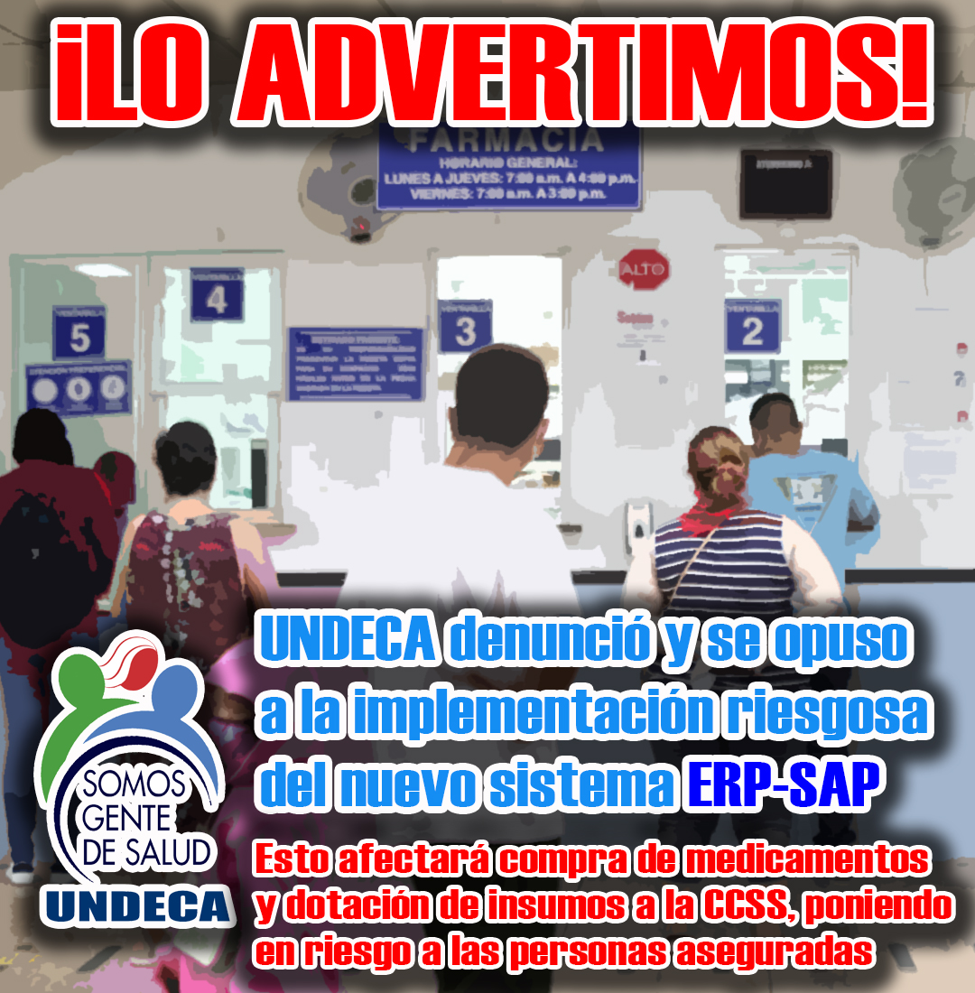 La Unión Nacional de Empleados de la Caja y la Seguridad Social (UNDECA) comunica a la ciudadanía y los trabajadores que ha presentado una denuncia formal ante la Contraloría General de la República (CGR) sobre la grave situación que enfrenta la Caja respecto a la implementación del sistema de Planificación de Recursos Empresariales (ERP-SAP).