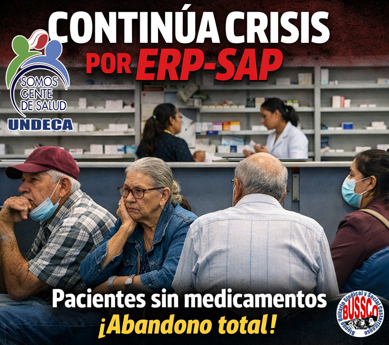 La Unión Nacional de Empleados de la Caja y la Seguridad Social, UNDECA, manifiesta su más enérgica condena y profunda preocupación frente a la grave escasez de medicamentos que afecta a miles de personas usuarias de la Caja Costarricense de Seguro Social (CCSS), como consecuencia de las fallas persistentes en el sistema informático ERP-SAP implementado atropelladamente y que hemos denunciado reiteradamente.