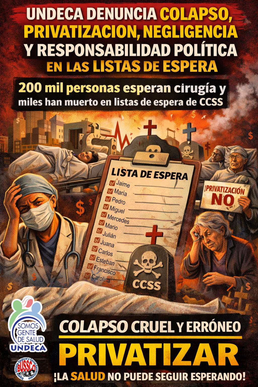 UNDECA alerta a la opinión pública nacional sobre una emergencia sanitaria silenciosa, sostenida y profundamente injusta: las listas de espera de la Caja Costarricense de Seguro Social, que se han convertido en una condena para miles de personas, afectando directamente el derecho fundamental a la salud, la dignidad humana y la igualdad en el acceso a los servicios públicos.