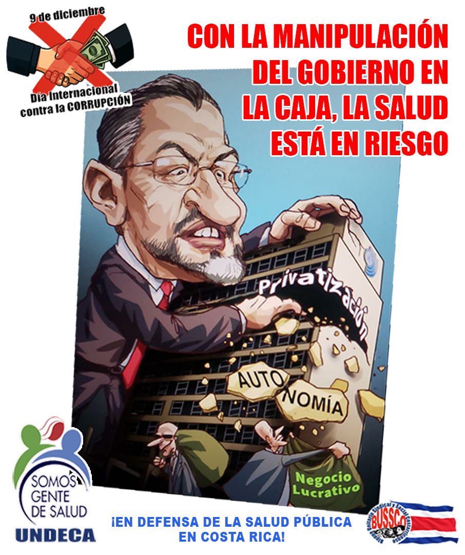 Camino al 9 de diciembre, Día Internacional contra la Corrupción, llamamos a la vigilancia activa, a la denuncia y a la organización y movilización social para impedir que destruyan la Caja que ha sostenido la salud y la vida de Costa Rica durante más de ocho décadas.